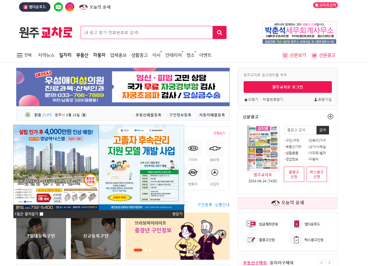 오늘은 이렇게 강원도 원주(원주시) 교차로 홈페이지에서 확인할 수 있는 구인구직, 알바 및 일자리, 부동산 정보 등에 대해 정리해드렸습니다.