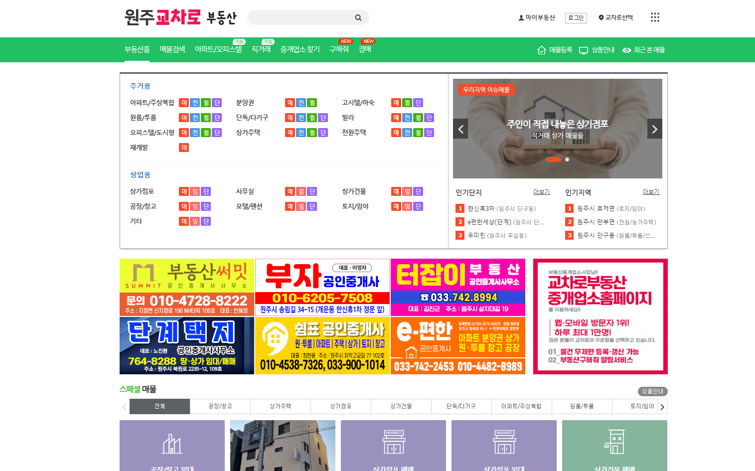 주거용(아파트, 주상복합, 분양권, 빌라, 주택, 오피스텔 등) 혹은 상업용(상가, 사무실, 토지, 모텔, 공장 등)에 따라서도 명확히 구분이 되어있고요.