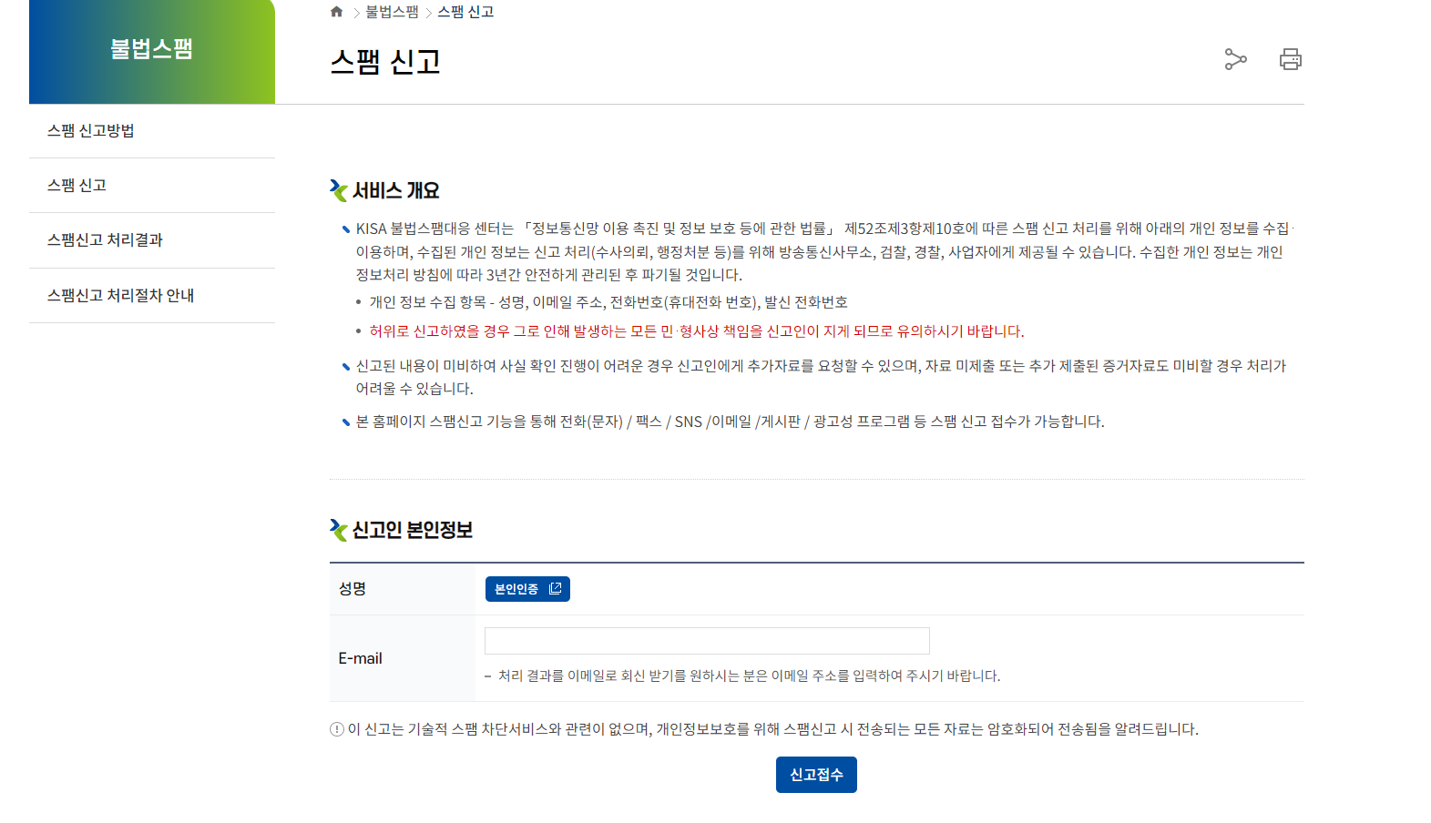 홈페이지를 확인해보시면 신고인의 본인 인증을 통해 신고 접수부터 처리 결과 등을 조회하실 수 있고요.