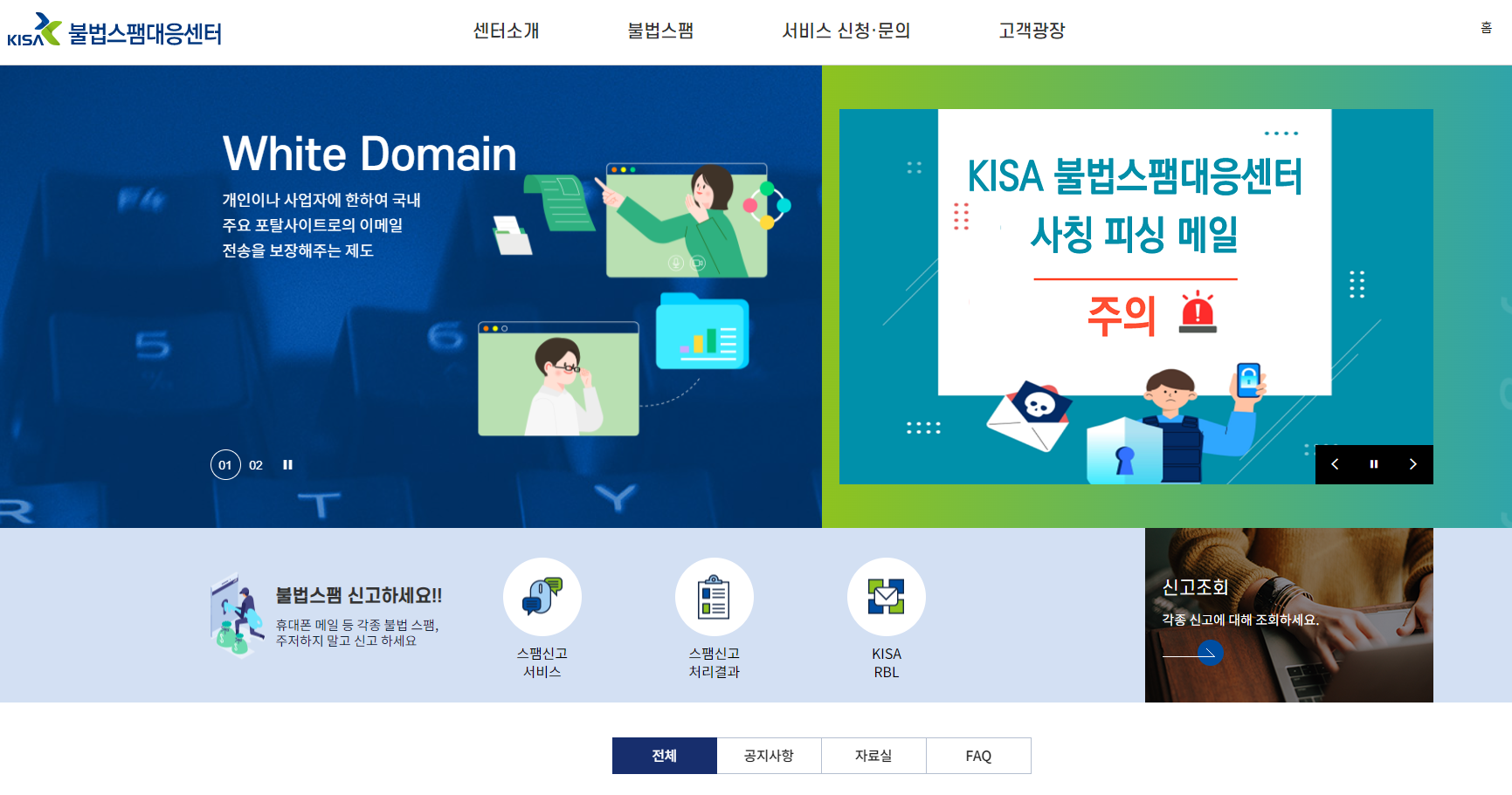 스팸 신고는 아래 남겨드리는 불법스팸대응센터 kisa 한국 인터넷 진흥원 사이트를 통해 진행하시면 됩니다.