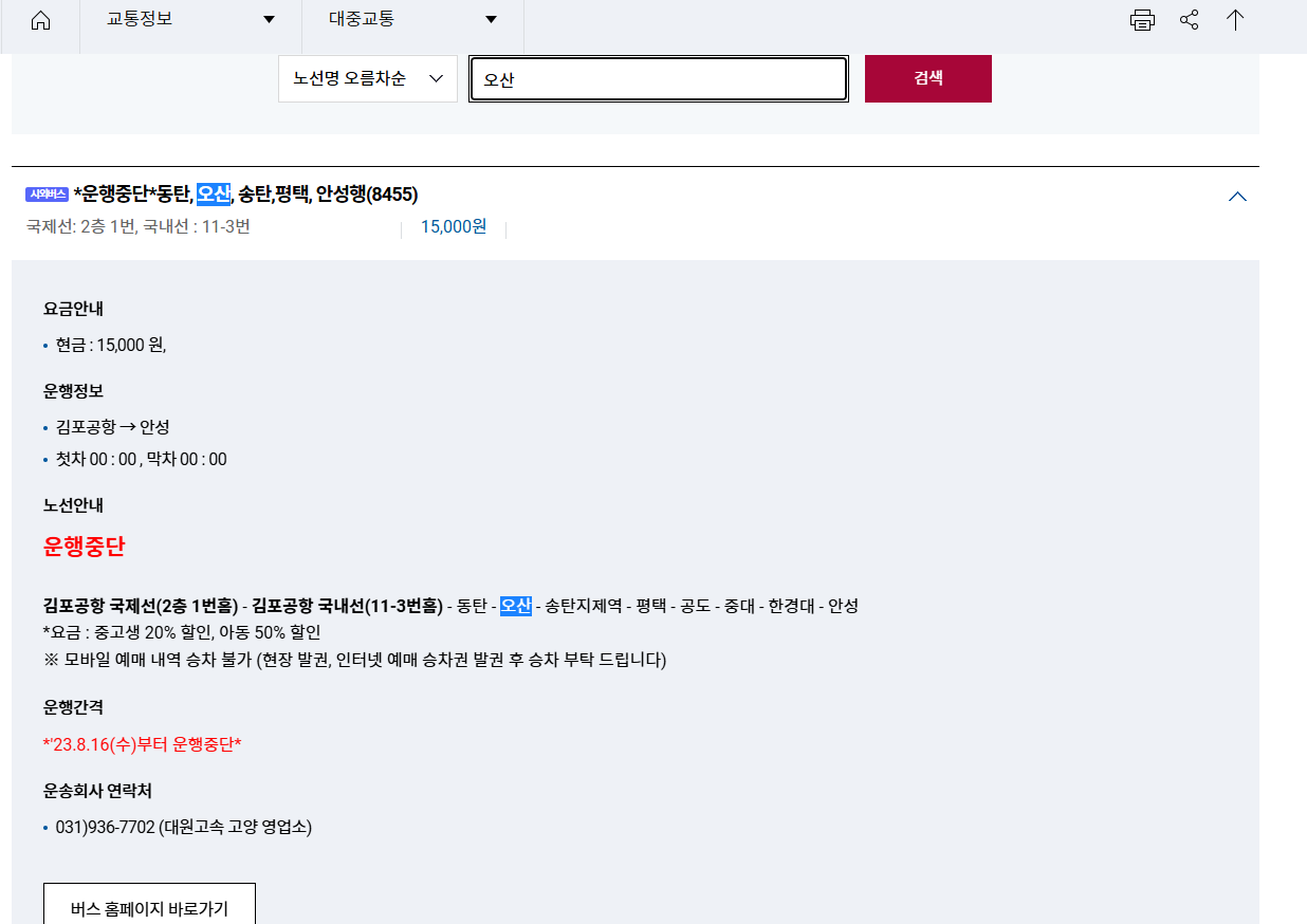 김포공항 역시 공식 홈페이지에서 모든 버스 노선을 조회할 수 있습니다.