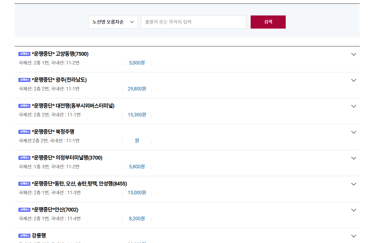 만약 인천공항까지 가는 버스가 김포공항을 경유한다면 동일한 버스가 조회될 수 있습니다.