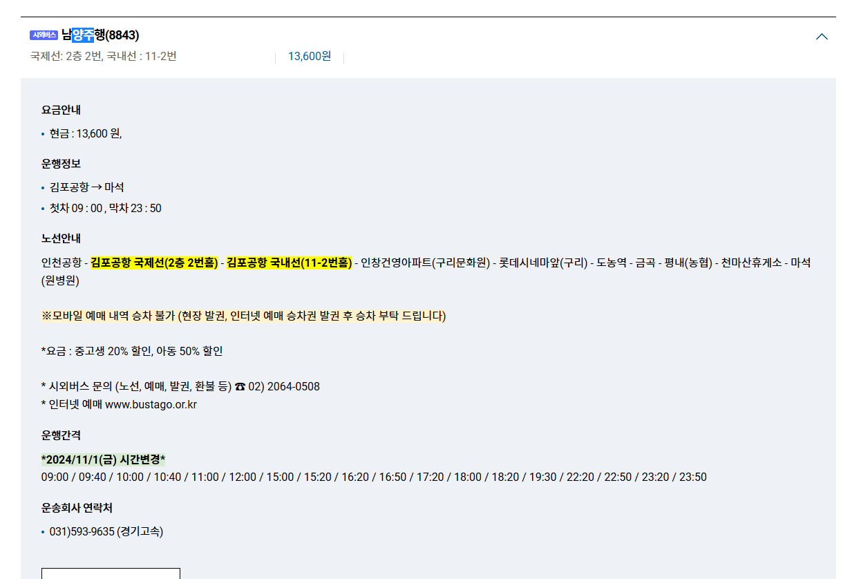 일반적으로 인천공항행 리무진 버스보다 김포공항으로 가는 버스는 운행 횟수가 적은 편인데요.