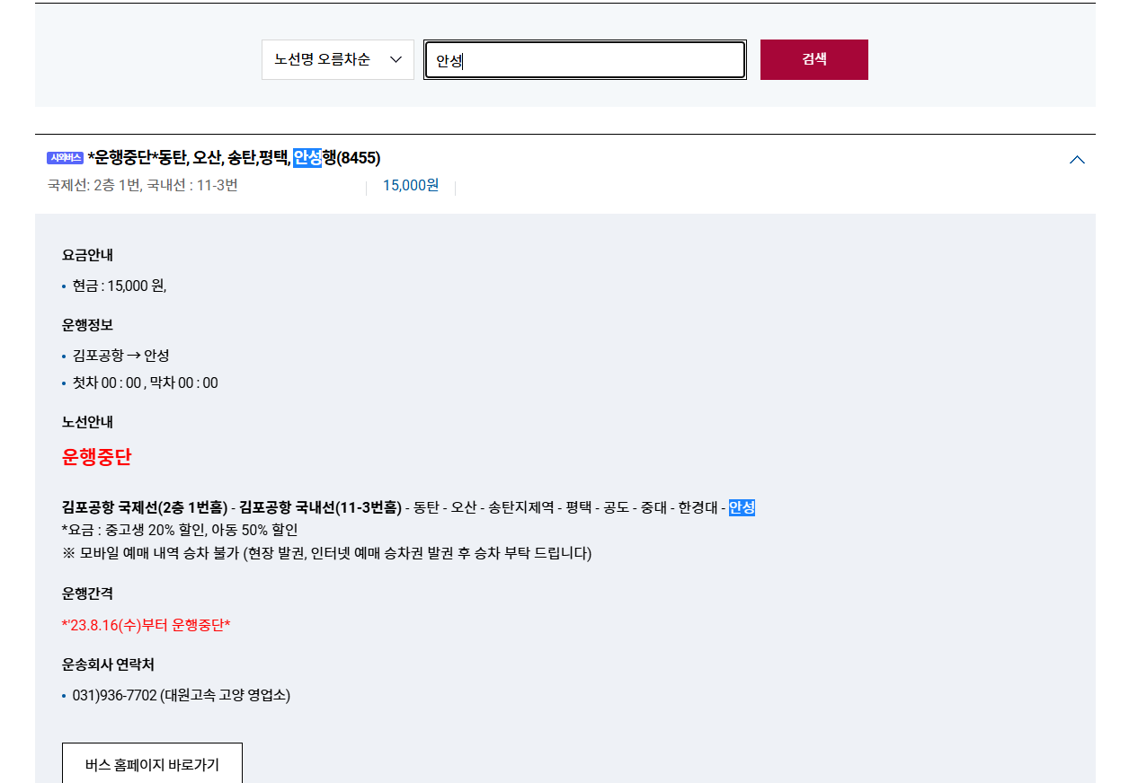 김포공항 역시 공식 홈페이지에서 모든 버스 노선을 조회할 수 있습니다.