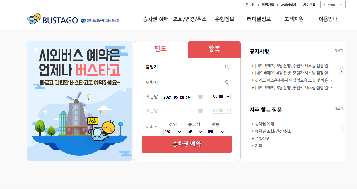 그리고 아이폰의 경우 '버스타고'라는 어플을 다운받을 수 없어서 홈페이지 사이트에 직접 들어가서 예매를 진행했습니다.