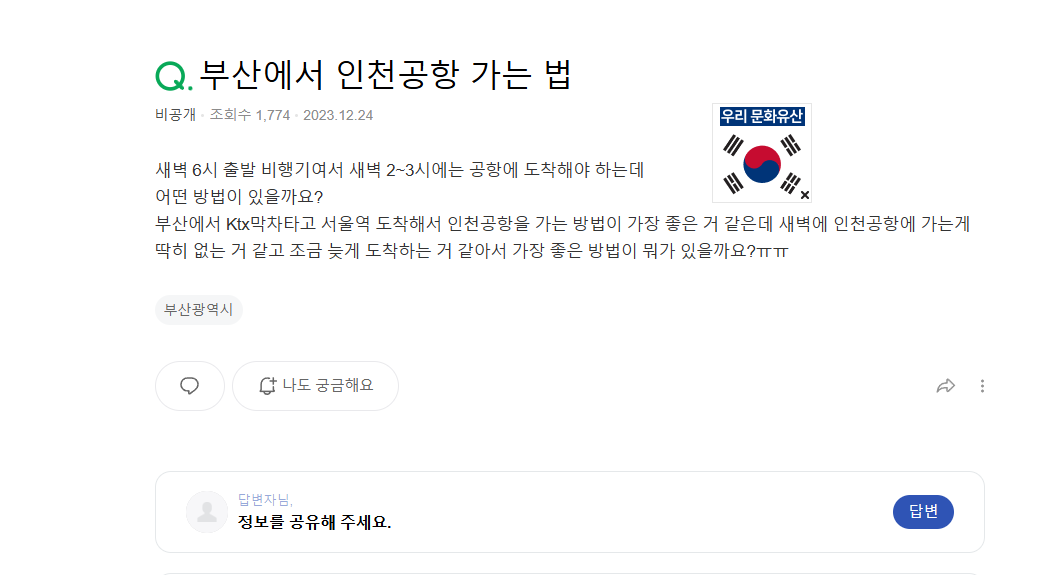 이런 경우 주변 인근 지역에 공항 버스가 운행되고 있는지 조회해보거나, 그냥 지하철이나 비행기를 타고 가는 방법이 가장 빠르다고 볼 수 있는데요.
