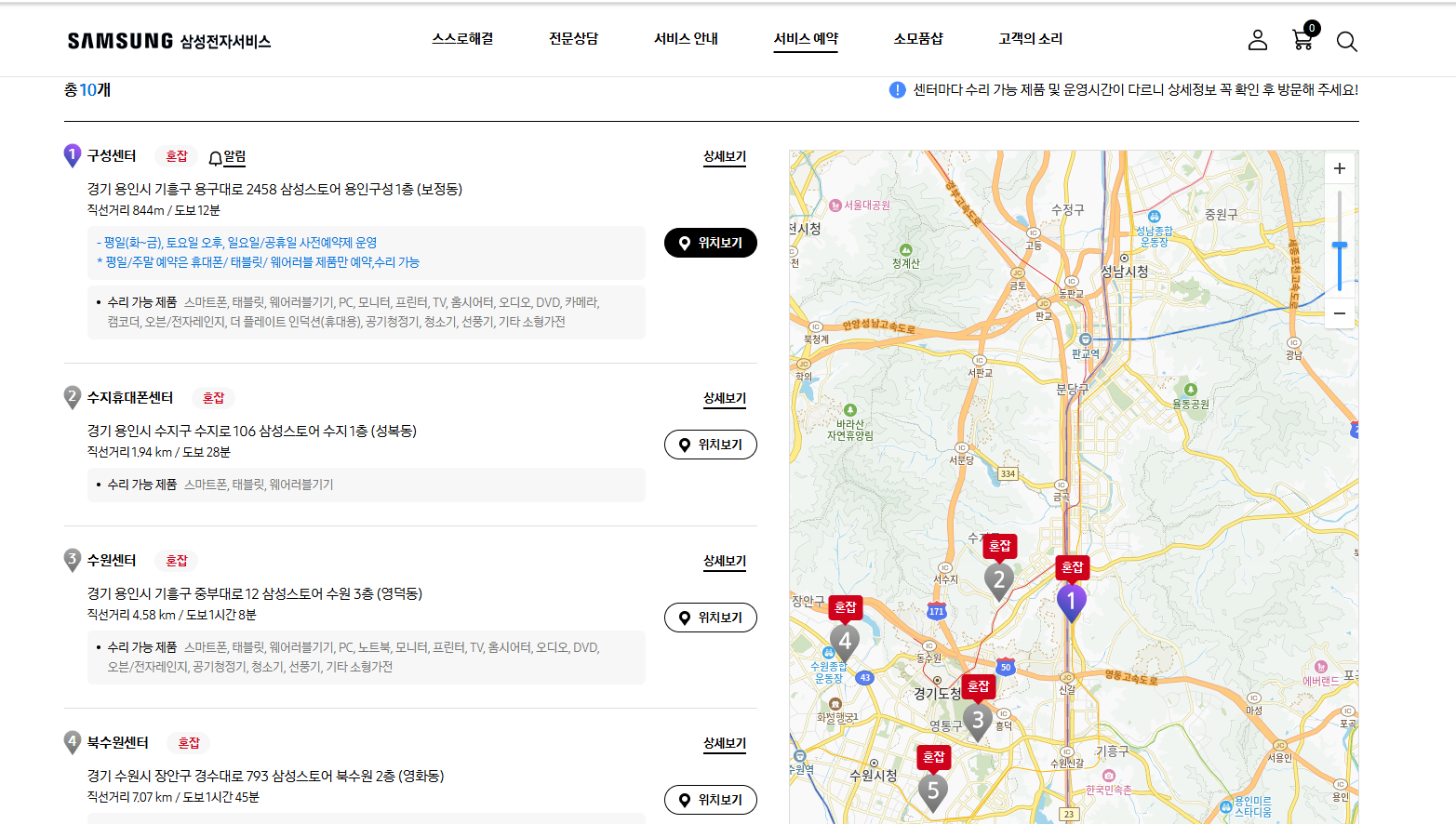 - 출장 기사 예약: 직접 방문이 어려운 경우 신청