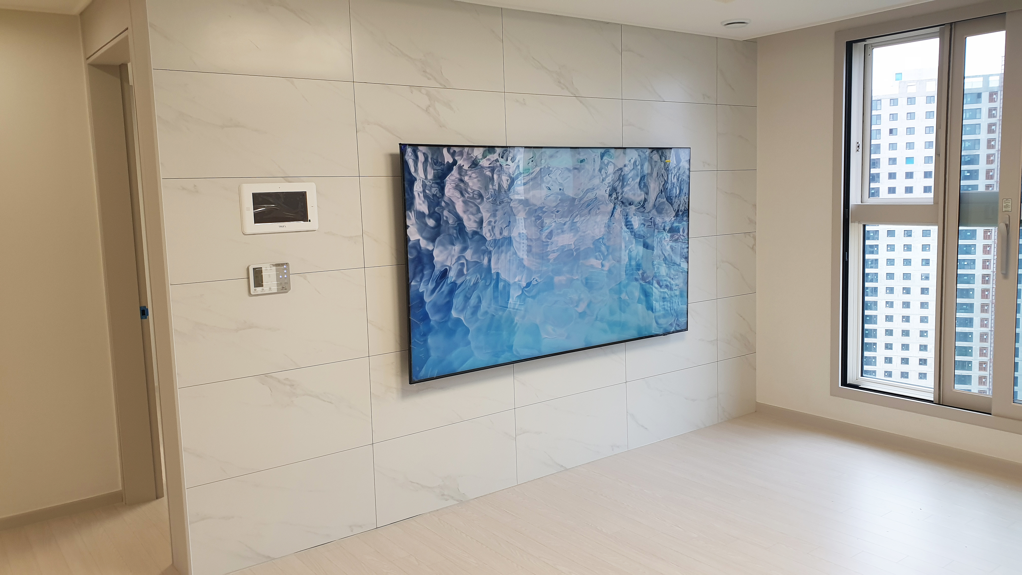 삼성 85인치 tv 설치가 끝나고 거실을 전체적으로 봤는데 거실 쪽 공간이 꽉 차는 느낌이 들고 집안의 느낌이 달라지더라고요.