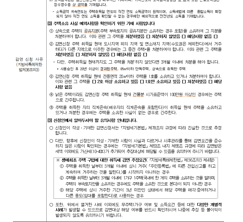 - 생애최초 취득세 감면신청서