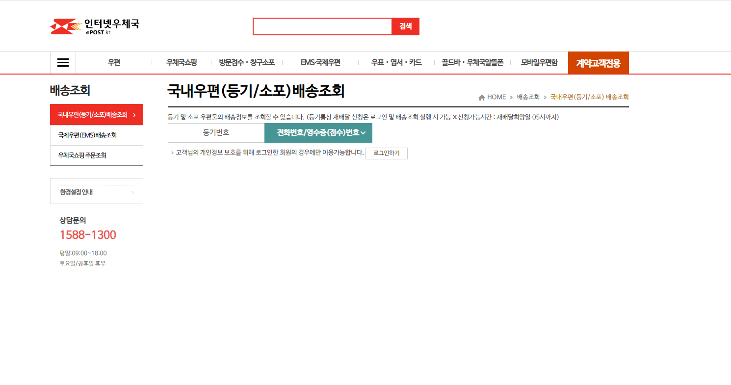 만약 등기 우편 번호를 모르고 계시는 상황이라면 전화번호 및 영수증 조회로도 간단하게 확인하실 수 있습니다.