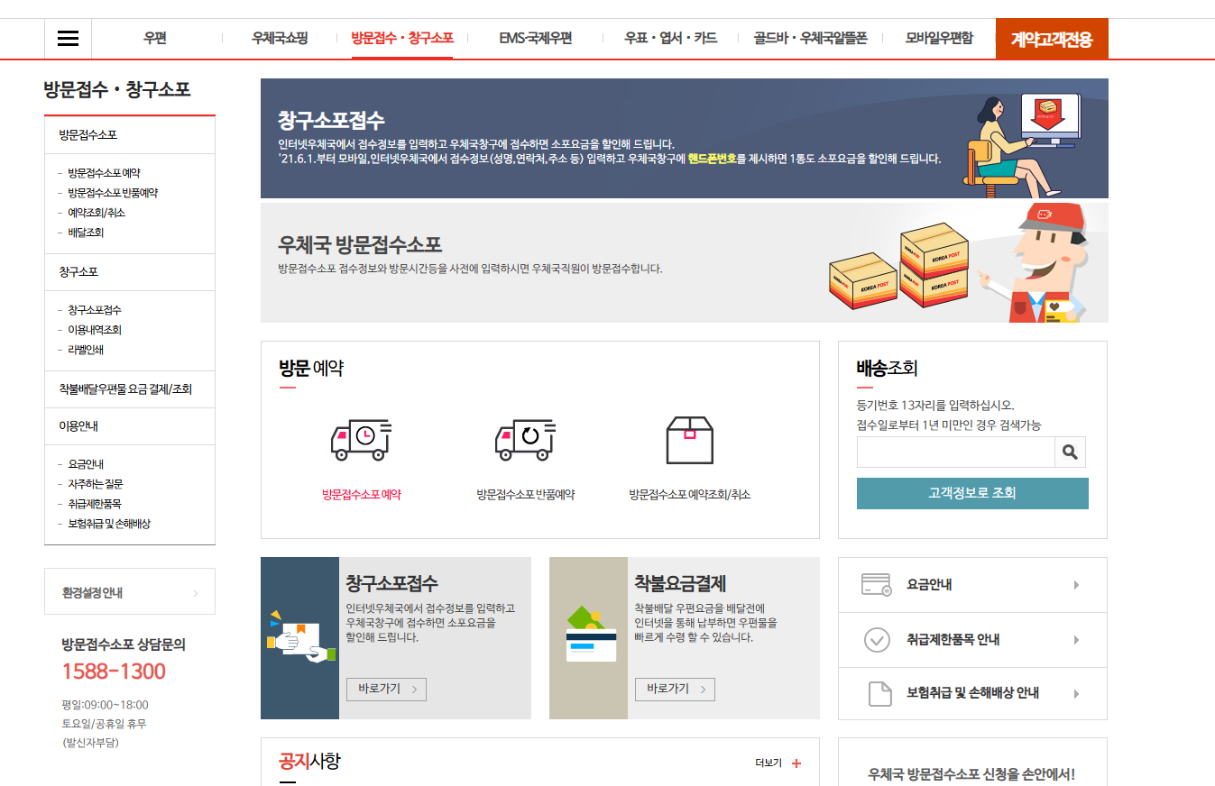 소포 예약 신청 또한 우체국 홈페이지에서 간단하게 할 수 있습니다.