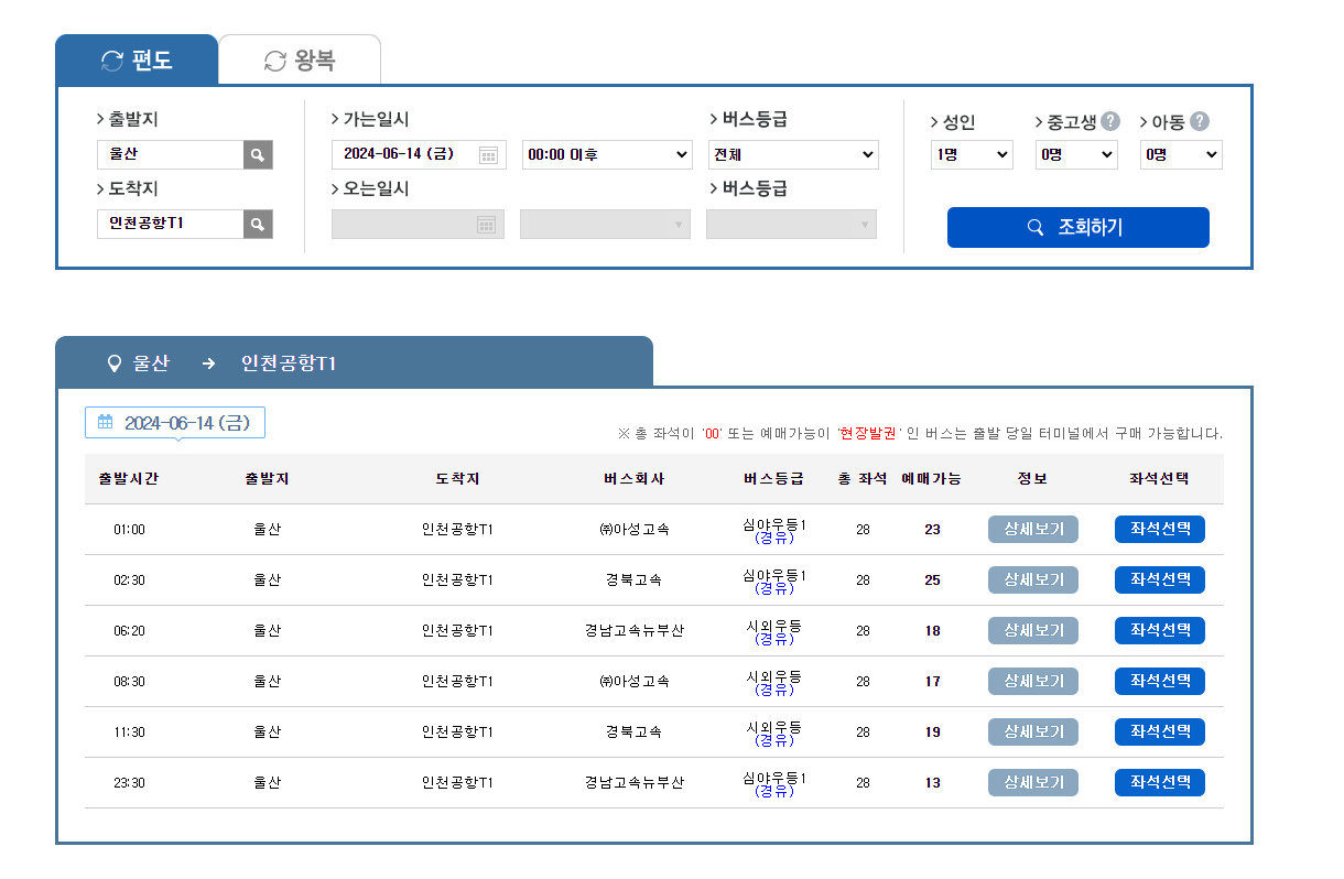 울산에서 인천공항까지 가는 공항버스는 제가 위에서 알려드린 '버스타고' 홈페이지 사이트를 통해 예약이 가능한데요.