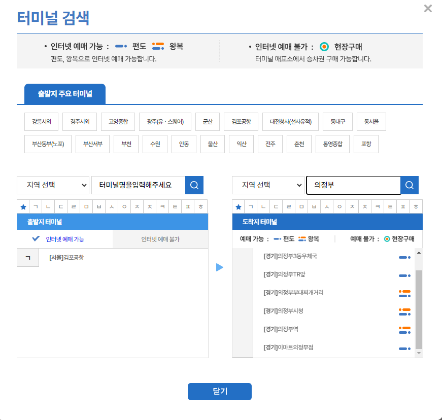 어플을 통해서는 출발지, 도착지 설정을 해서 예매를 진행할 수 있는데요.