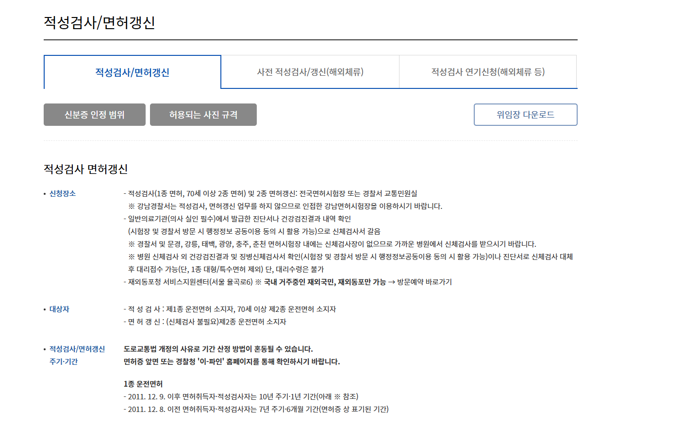 더불어 1종, 2종 면허증에 따른 적성검사 관련 내용도 확인하시기 바랍니다.
