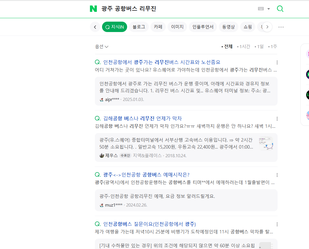 지금까지 전라도 광주(광주광역시)에서 인천공항 리무진 버스 시간표, 노선, 예매(예약), 김포공항 가는 방법을 정리해봤습니다.