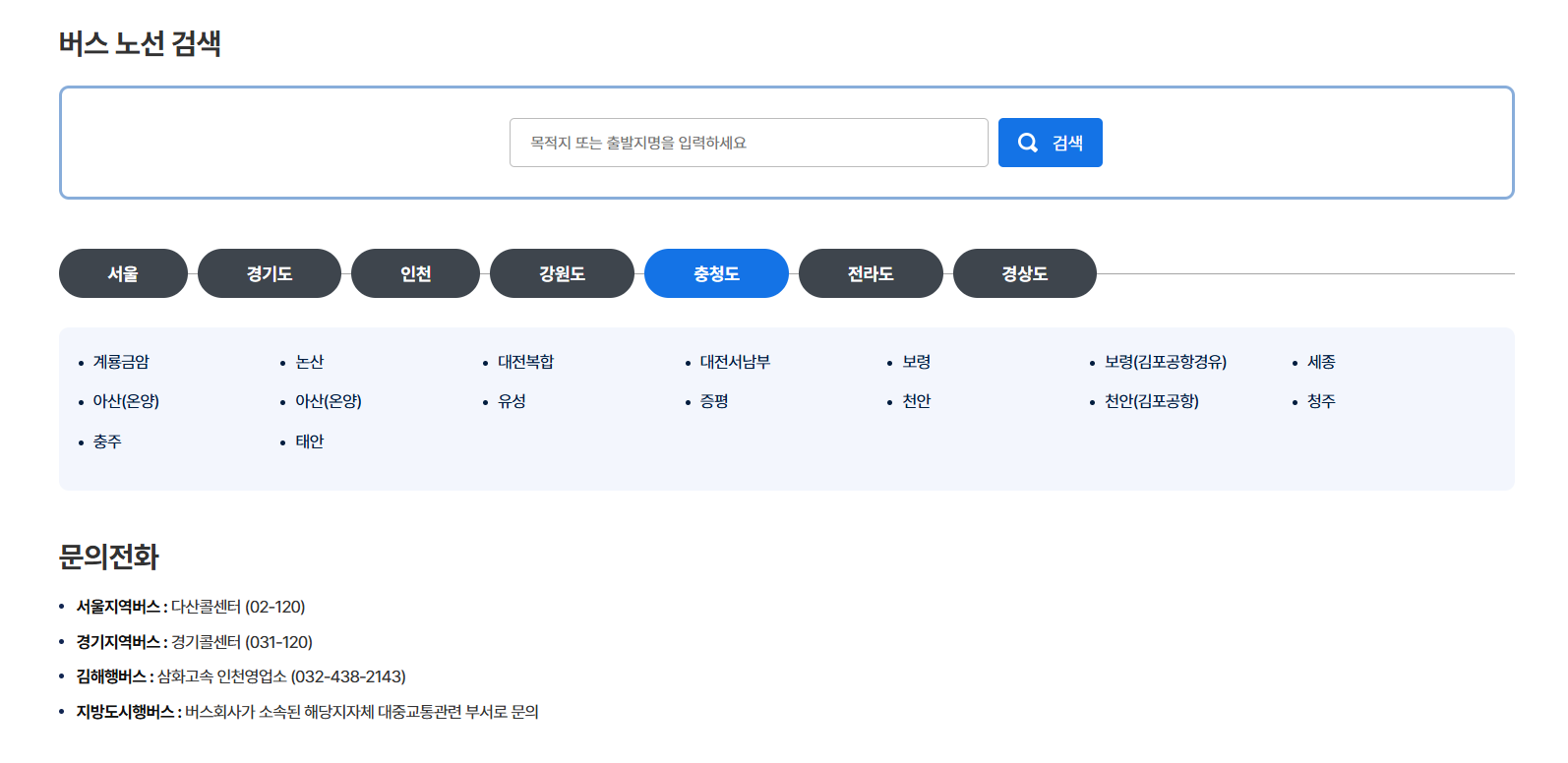 그나마 대전광역시, 청주, 천안 등과 같이 도시급의 인근 지역으로 경유하는 버스를 찾아보는 것이 최선입니다.