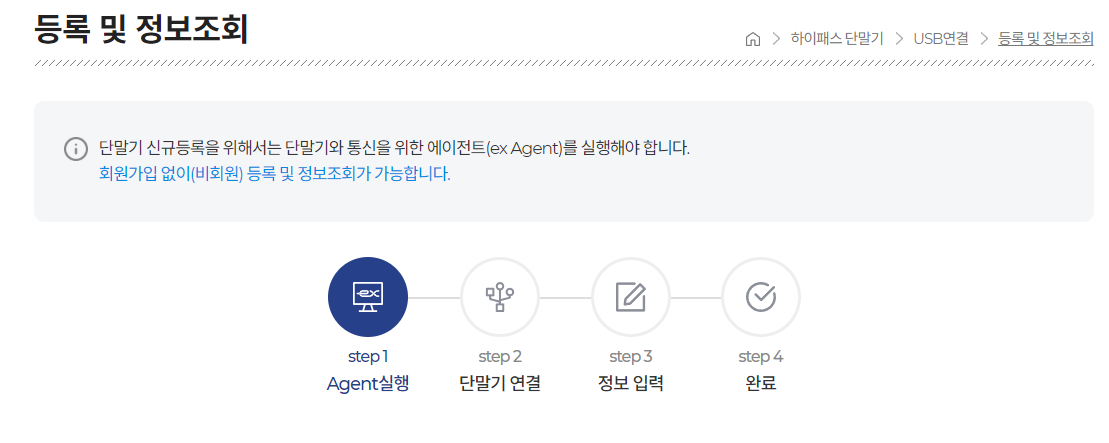 만약 모든 방법이 잘 안되는 경우 집 주변에 있는 고속도로 영업소에 가서 직접 등록을 하셔야 됩니다.