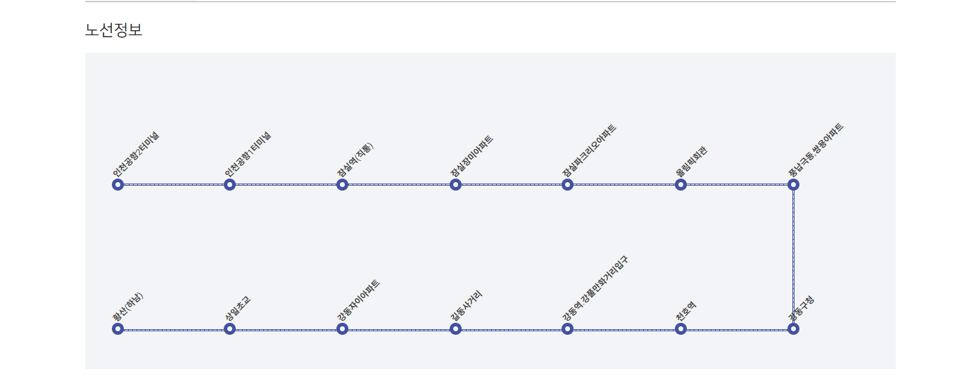 - 6200번 버스 노선 : 인천공항 - 잠실역 - 잠실장미아파트 - 잠실파크리오아파트 - 올림픽회관 - 풍납극동, 쌍용아파트 - 강동구청 - 천호역 - 강동역 - 길동사거리 - 강동자이아파트 - 상일초교 - 황산(하남)