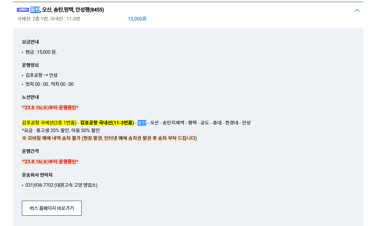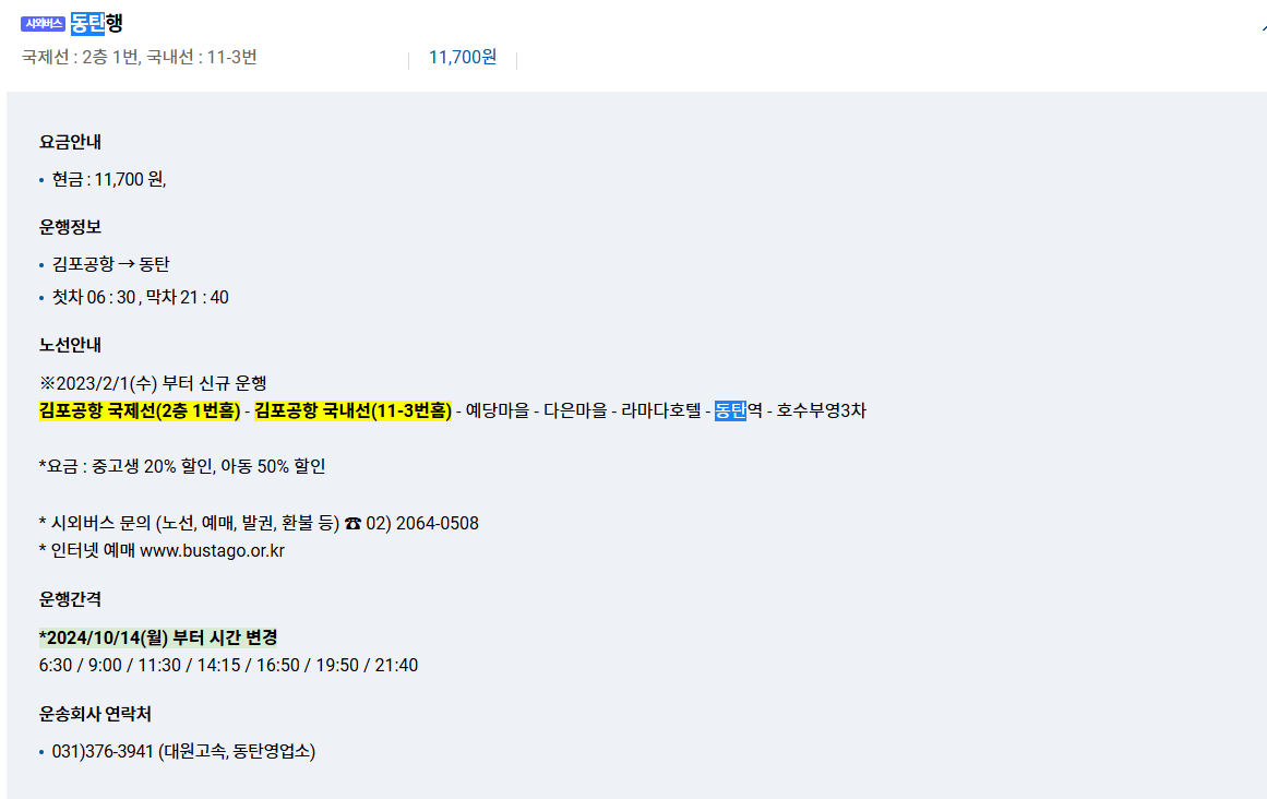 2024년 10월 14일부터 시간표가 변경됐다고 하니 리무진 버스 예매를 진행할 때 참고해보시고요.