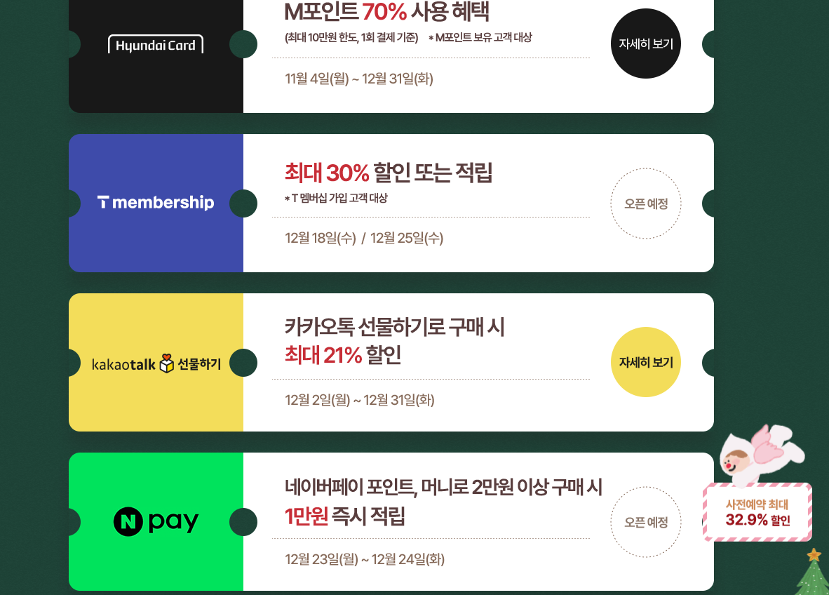 또한, 카드 회사별 포인트나 통신사 멤버십 혜택 등 다양한 할인 혜택을 받을 수 있는 부분도 확인해보시기 바랍니다.