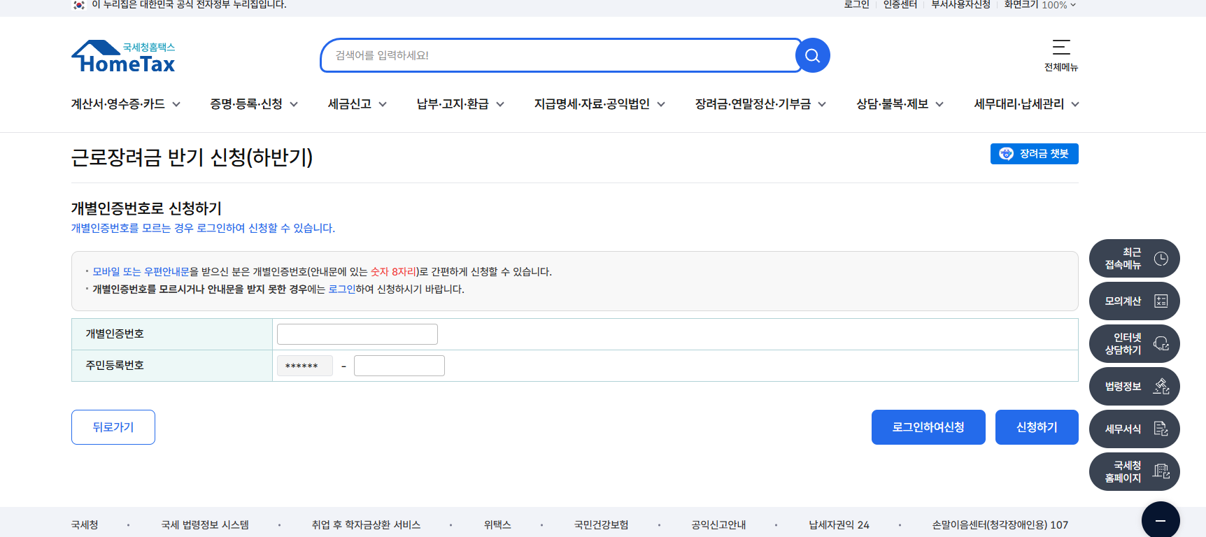 근로장려금 신청은 국세청 홈택스에서 간편하게 할 수 있습니다.