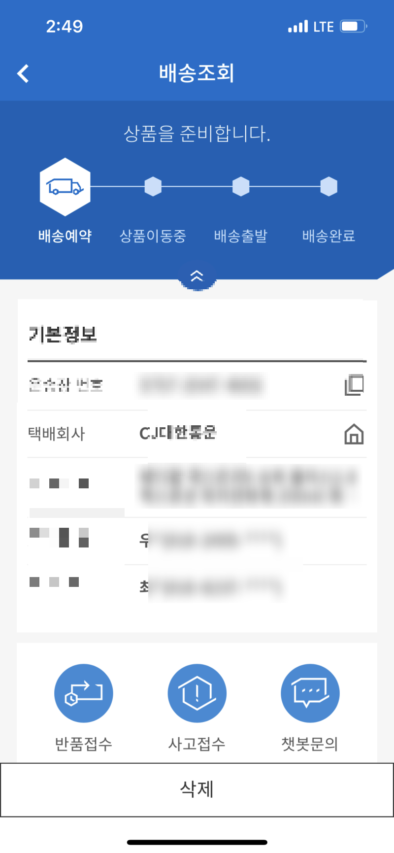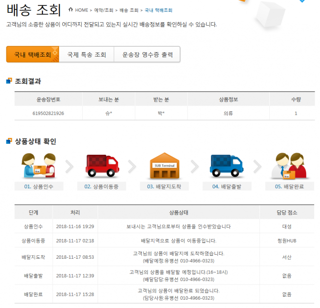 - 배송 완료 : 물품이 수령인에게 전달된 단계입니다.