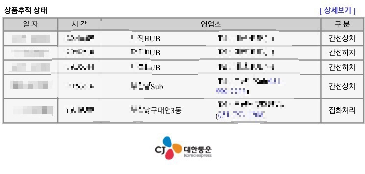 CJ 대한통운의 공식 웹사이트에서 배송 조회를 할 수 있습니다. 사용자는 사이트에 접속 후, 배송조회 메뉴에서 운송장 번호를 입력하면 손쉽게 배송 상태를 확인할 수 있습니다. 아래 이미지는 CJ 대한통운의 택배 조회 결과 화면을 보여줍니다.
