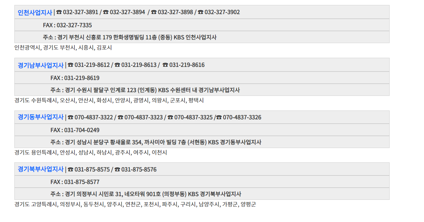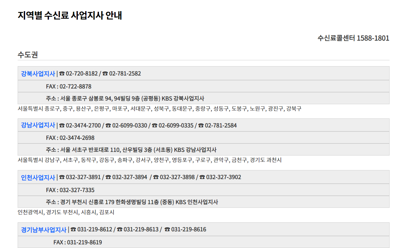 오늘 포스팅에서는 이렇게 KBS TV 수신료 해지 방법과 더불어 전국 지사(지점) 홈페이지, 콜센터 등에 대한 정보를 정리해드렸습니다.