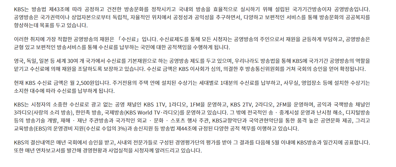 - 환불 처리 : 환불 신청이 완료되면, KBS에서 환불 처리를 진행합니다. 환불은 보통 1~2주 이내에 처리됩니다.
