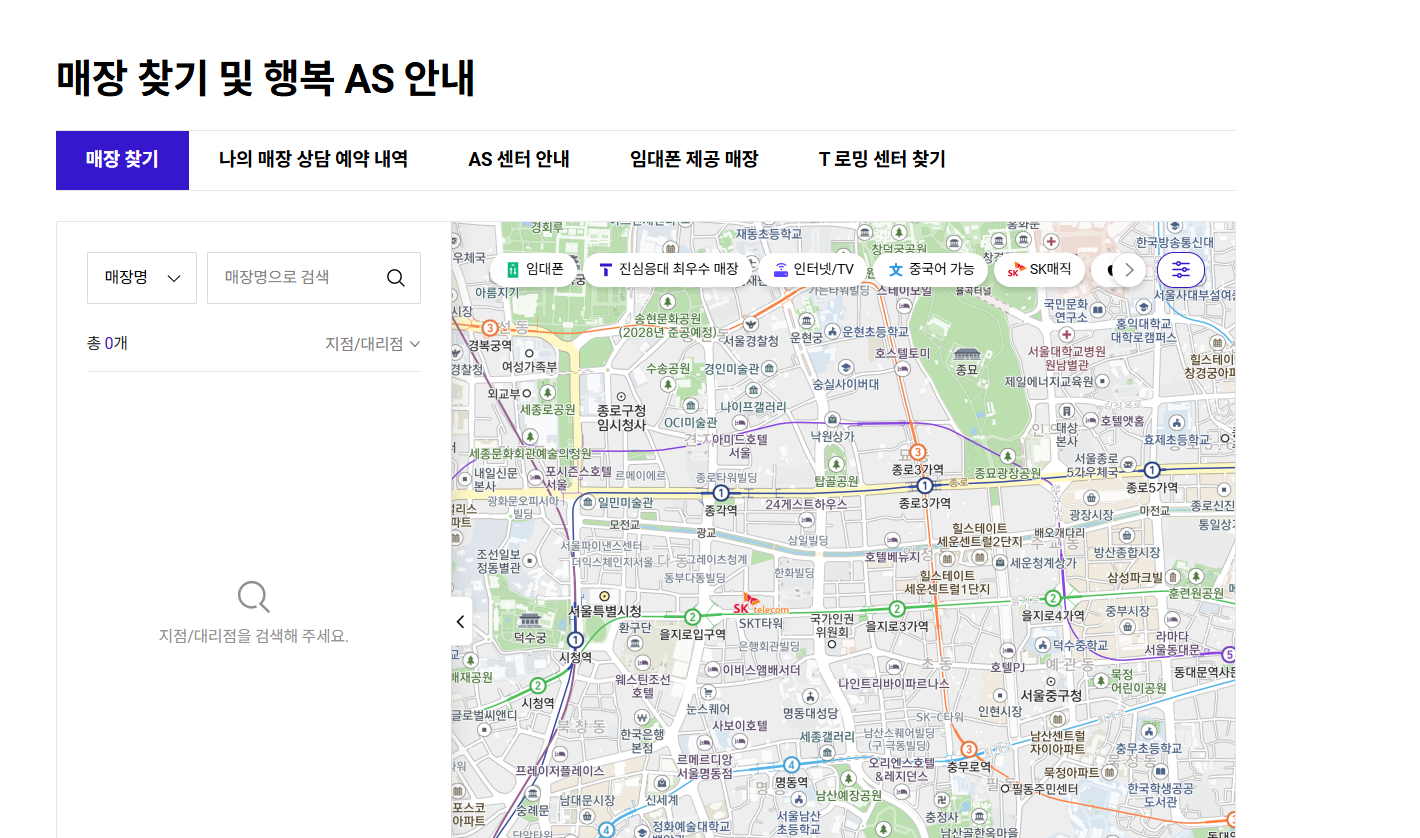 아래 남겨드리는 전국 행정구역에 따라 티월드(T world) 대리점 및 매장 찾기를 활용해보시고요.